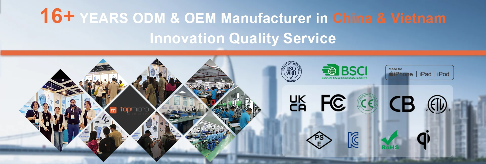 Shenzhen Top Micro Technology Co., Ltd was founded in 2011, we are professional factory to make various cables & chargers.Our mission is to provide best service to our customers and concentrate on building a long-term partnership with our customers which leading us to create a win-win situation. We are committed to putting our customers as the first priority, by providing high quality products, integrity, honesty and accountability in our worldwide business.building a long-term partnership with our customers which leading us to create a win-win situation. We are committed to putting our customers as the first priority, by providing high quality products, integrity, honesty and accountability in our worldwide business.
